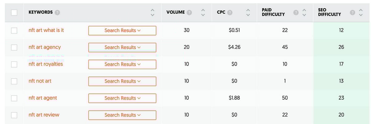 I’d turn this former art dealer site into an authority site covering the NFT art world, featuring the top news stories in the space, and curating top NFT collections and up-and-coming artists. Again, start with low-hanging keywords:
