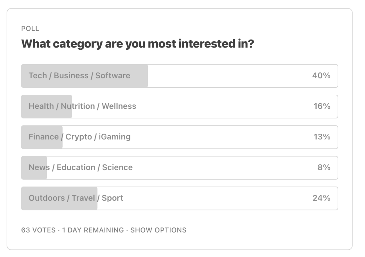The results are in from last week’s newsletter, and it looks as if I’ve going to bias to featuring more tech / business / software content sites and domains: