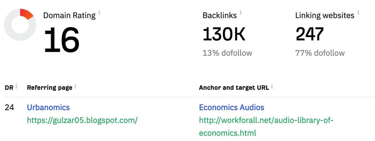9 years of age, 157 unique referring domains, 5 high authority links