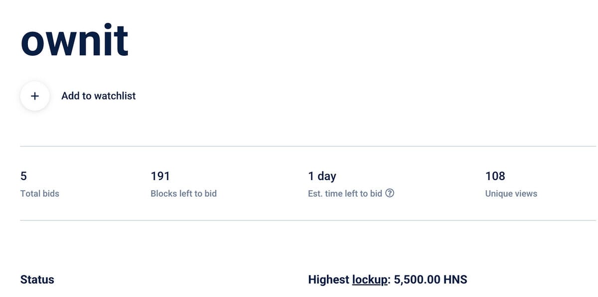 Talking of Handshake TLDs, here’s a decent one at auction on Namebase right now: