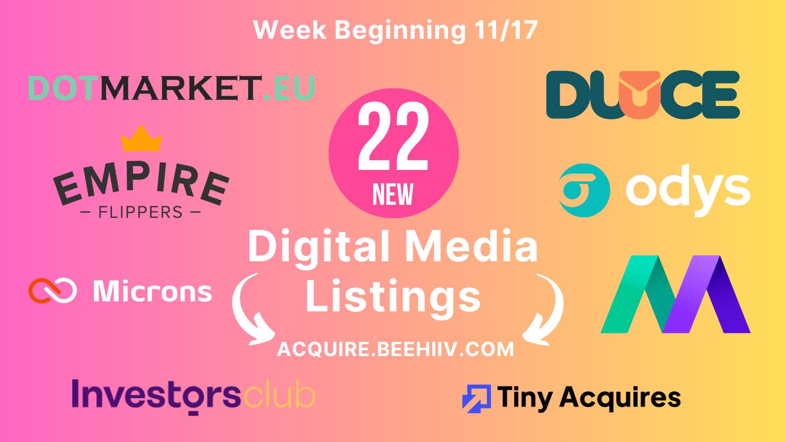 Now let’s start with 22 media listings across the major marketplaces,